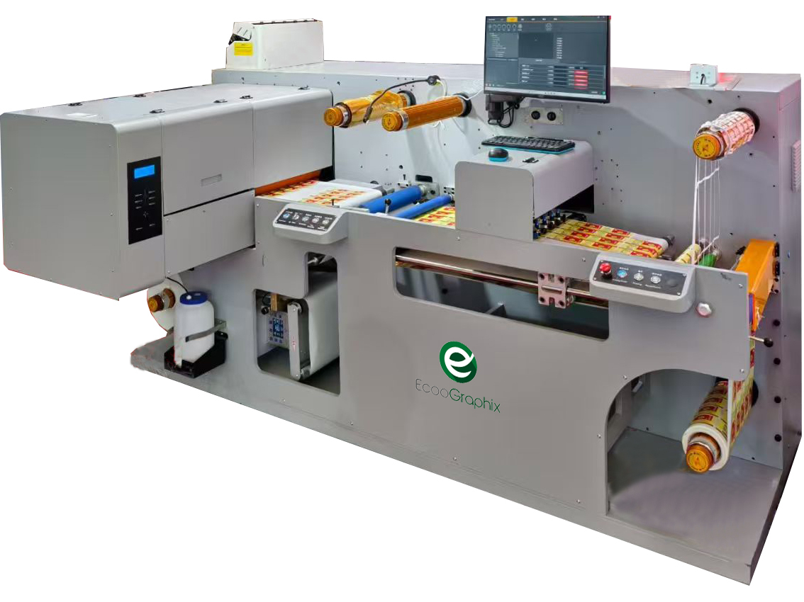 ECOO Label IQ-330 آلة الطباعة والقطع المتكاملةيمكن أن تطبع CMYK والحبر الأبيض واللون على الورق والمواد اللاصقة والأفلام البلاستيكية المرنة للتعبئة. كما أنها تدمج العمليات التالية مثل الطابع والقطع المقطوع والطلاء والقطع.هذا يجعلها حلًا فعالًا من حيث التكلفة للطابعة البطاقات والإنتاج بالفئات الصغيرة والعلامات المخصصة.